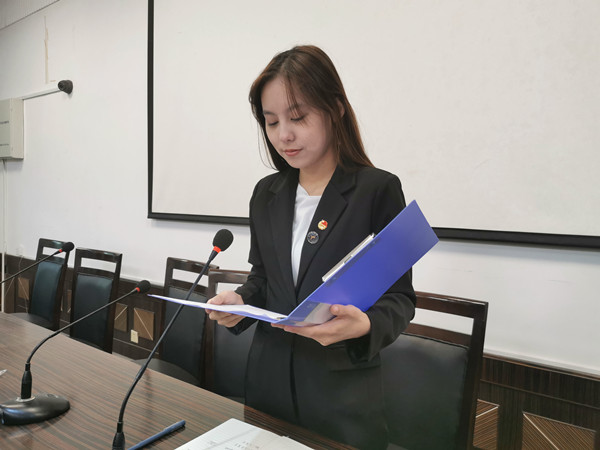 本次会议首先由各位队员依次进行自我介绍,有利于队员之间更加了解。随后,万语烁总结了上一届主持队的相关活动,感谢他们的辛勤付出,并简单介绍了主持队的历史与主要工作活动,对上个月的主持工作进行了总结,并对下个月的工作进行了人员安排。在此次会议中,万语烁关于主持的相关事宜对于成员们进行了培训,讲解了主持活动中的着装要求、稿件写法与文稿的上交时间,对于新加入的队员进行了主持文稿朗读培训。