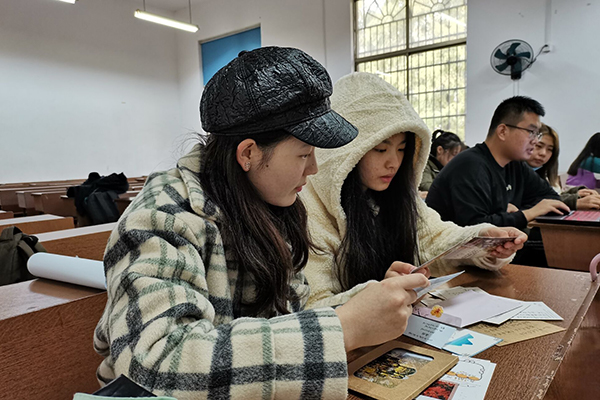 活动中,文女部成员提前为各张明信片编号,在评选过程中向大家展示了每位参赛者明信片的整体设计并朗读了各张明信片的文字内容和设计理念。接着,在何其芳的主持下,各班代表按编号进行投票表决,采取每人三票制。随后,何其芳和郑熙子参考大众评委的意见,选出了三份优秀明信片作品推至学校进行复赛选拔,并和文女部成员讨论三张明信片值得修改的地方,综合整理意见后将情况汇总,及时传达给参与学校复赛的同学完成后期改进。最终,文女部共评选出一等奖三名,二等奖五名以及三等奖六名。