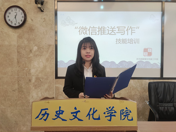 (通讯员 盖永锐 何念秋)3月22日中午,77779193永利官网团委青发部春华团校“微信推送写作”技能培训在学院203教室举行。此次培训由校新媒体中心学生负责人万语烁主讲。2019级、2020级全体春华团校学员参加本次活动,由黄一凡作为本次培训主持人。