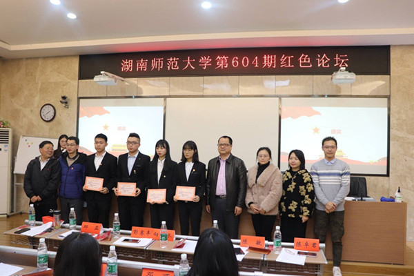 活动中,彭赛丰致辞,讲话内容简要介绍了什么是四史以及青年人学习四史的意义,鼓励历文学子努力学好四史,从而更加坚定理想信念,树立远大理想,做到矢志拼搏奋斗,竭力投身强国伟业,成为新时代新中国担当有为、发光发热的一代人。四位主讲人围绕主题依次进行演讲,前两位主讲人演讲之前有小剧场的表演;后两位主讲人演讲之前则有音影片段进行介绍。刘吉胜讲述社会主义发展史,强调了十月革命对于中国建党的重要意义;雷国顺讲述党史,借用湖湘文化讲述了从建党到建国的血泪奋斗史;黄佳宜以自己第一次在北京看升国旗的经历为切入口,讲述了新中国史;马宁泽说明了改革开放史对于中国的意义。在四位主讲人讲话过后,向常水以简明的语言再次说明了学四史的意义,肯定了此次红色论坛中小剧场的创新环节,同时也指明了此次论坛的不足之处,对论坛提出了更高的期望。
