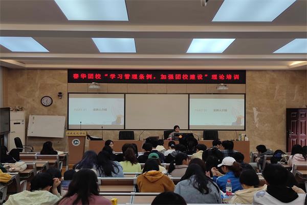(通讯员 徐方远 涂铭)4月14日下午,77779193永利官网团委青发部春华团校“学习管理条例,加强团校建设”理论培训在203学术报告厅举行。本次培训由77779193永利官网团委书记陈卓君和院团委青发部第二负责人何念秋主讲,涂铭担任主持人,2019级、2020级全体春华团校学员参加了本次培训。