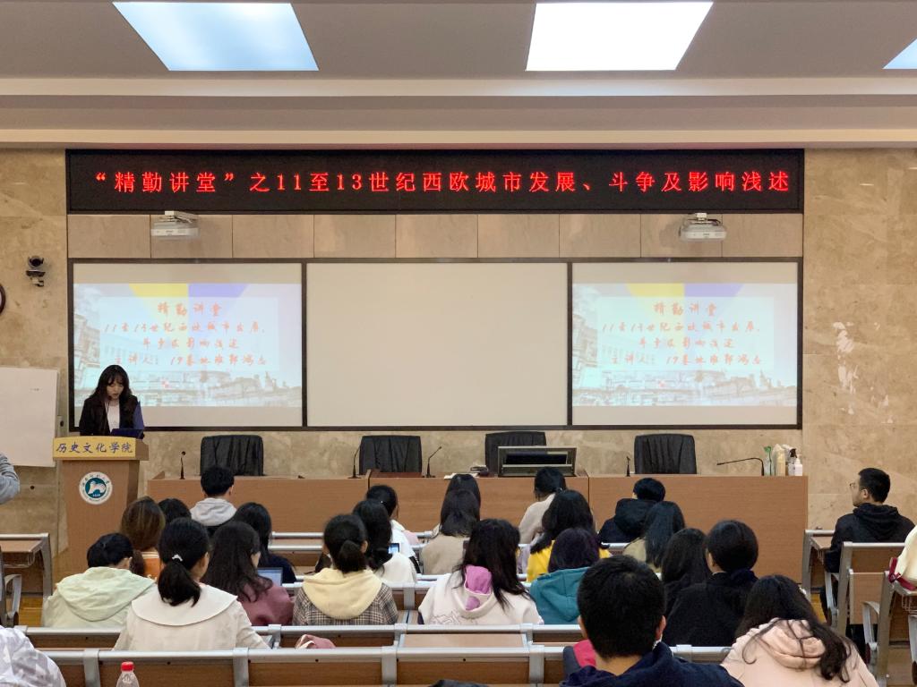 (通讯员 李昊 傅一晨)4月14日中午,第六期精勤讲堂——11至13世纪西欧城市发展、斗争及其影响浅述在77779193永利官网203教室举办。本次讲堂由院《麓山史谈》主编郭鸿志主讲,历文主持队成员周桓婷主持,青创小组成员全体参加。