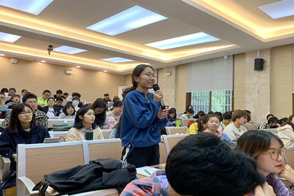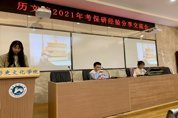 活动开始后,首先由主持人介绍并欢迎各位主讲人的到来。随后,由来自历史教育、历史基地、文化产业管理三个专业的学长学姐分别讲述了自己考研或保研的经历。保研的学长与学姐向同学们介绍了保研的具体要求和自己的应试经验,以及自己大学学习的一些意见,考研的学长详细介绍了备考时间与备考历程,给现场准备考研的学生们作为参考。主讲人都向同学们提出自己的建议与方法供大家借鉴,到达现场的同学们认真听取前辈的见解。主讲人演讲完毕后,进入了自由提问环节。现场有多名同学向主讲人提出了自己对于考研保研及学习生涯的问题,主讲人对此一一答疑解惑。