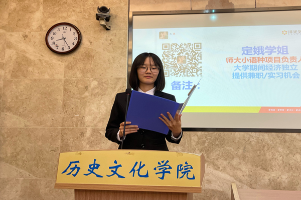 推介会伊始,唐美容灵活运用日、韩、泰等国语言进行自我介绍,撷取日、韩、法等国中引人入胜的流行文化与同学们进行交流互动,充分调动了同学们对小语种学习的积极性。随后,她通过对“复合型1+1人才”概念的阐释和日语JLPT考试的介绍,展现了“小语种加专业”学习规划的可行性。最后,唐美容将小语种学习与“一带一路”、“RCEP”等大政方针接轨,阐明了逐步深入全球化进程以来,小语种学习的重要政治和经济意义。现场气氛活跃,同学们认真听讲,参与度和积极性较高。