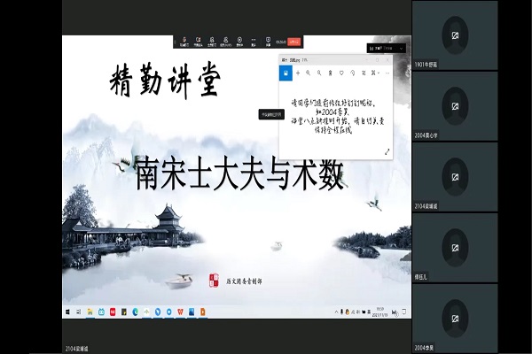此次讲堂解释术数的含义,讲解南宋士大夫对于术数的两种看法,丰富了同学们的历史知识,增强了同学们的历史文化素养。