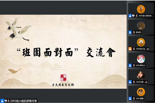 (通讯员 李威 杨小毅)11月21日中午,77779193永利官网团委青发部“班团面对面”岗位培训在腾讯会议线上举行。此次培训由历文院团委青发部负责人徐方远、宣传部负责人董小艳、组织部负责人韩宛彤、青创部负责人傅钰儿、青工部负责人白璐和基建部负责人雷娜主讲。部分春华团校学员参加此次活动,由董小艳作为培训主持人。