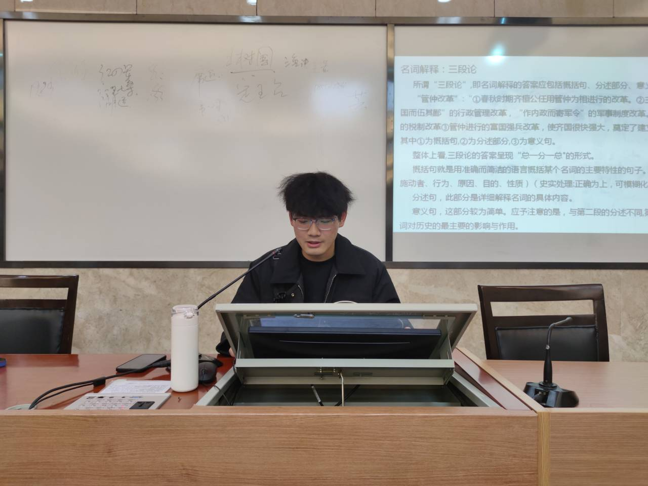 大会伊始,李青介绍了此次活动的大致流程。李青向同学说明了考试纪律要求。同时,由李玉林、杨韫中分别为同学们朗读了考试纪律要求,强调在考核中舞弊行为将受到严厉处理。随后,宋子玉、杨予曦与同学们分享了考试经验。宋子玉详细地讲解了历史专业课和公共课的考试复习方法、考试题型。同时,他也为同学们提出一些有关平时学习与考试的建议,鼓励同学们多看老师推荐的专业书目,养成良好的习惯。杨予曦认为同学们应该有良好的作习时间,制定复习计划、打造适合的学习环境,调整好学习心态,并针对文化产业管理专业的考试提出了挑选好复习资料、寻找考试方向等建议。大会最后,李青指出了本学期同学们在各方面存在的一些问题,并寄语同学们积极改正,实现个人的进步。