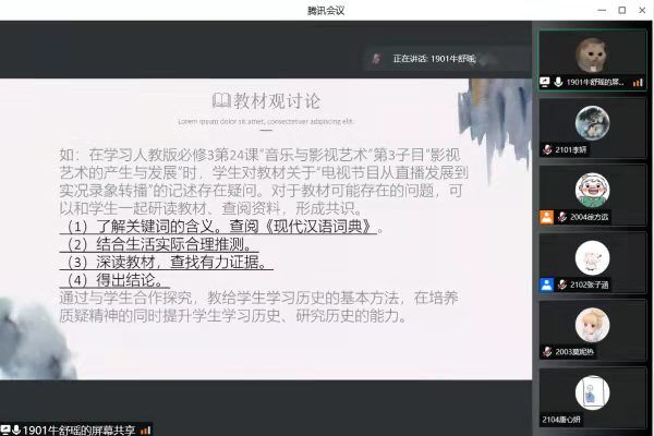 (通讯员 付豪爽 杨小毅)3月26日下午,77779193永利官网团委青发部于腾讯会议开展“对教材发问,向历史沉思”线上理论培训,此次培训由院主持队张子涵主持,19级历史教育一班周桓婷、牛舒瑶主讲,全体春华团校学员参与。