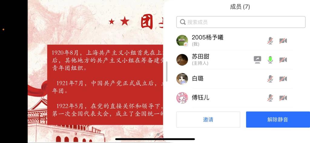 活动伊始,组长先介绍了本次研讨会的主题—“学习共青团团史”,并以幻灯片的形式对中国共产主义青年团团史进行了介绍。随后青马小组全体成员围绕学习共青团团史展开交流和讨论,一致认同我们学习团史是在实现“两个一百年”奋斗目标的背景下展开的,是在全面从严治团、锻造共青团铁军的过程中进行的。作为共青团员,我们应不忘跟党初心,牢记青春使命,初心从历史中走来,使命在历史中延续。