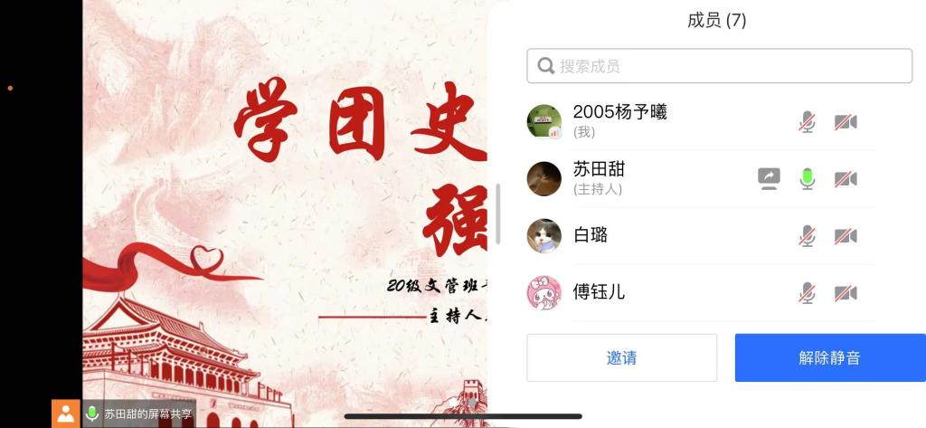 (通讯员 苏田甜)5月13日晚上,为庆祝中国共产主义青年团成立100周年,学好团史,牢记青春使命,77779193永利官网2020级文化产业管理班青马小组通过线上腾讯会议开展了“学团史,强信念”主题交流研讨会。此次交流研讨会由文化产业管理班青马小组组长苏田甜主持,青马小组全体成员参加。