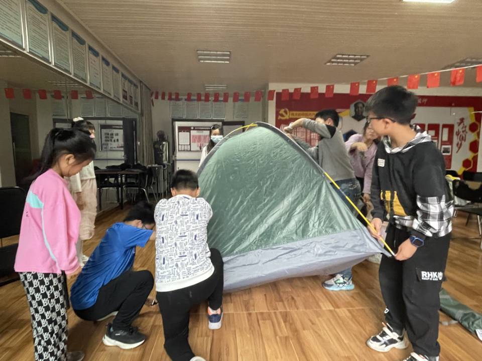 活动初期,区校部成员认真筹备内容,采购物品,并及时传达活动信息。活动中,主讲人先为孩子们讲解库布齐沙漠相关知识,随后进入搭帐篷环节。该环节以团队形式开展,志愿者悉心引导孩子们搭建帐篷,现场气氛活跃。随后,主讲人继续为孩子们讲解嵊泗列岛相关知识,讲毕进入折纸环节。在志愿者的帮助下,孩子们折出的纸船精美而立体。众人沉浸于丰富多彩的手工活动中,在收获乐趣的同时,领略到了旅游文化的魅力。活动后期,区校部成员进行了活动资料的收集与整理。
