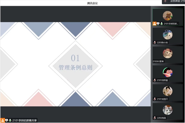 培训伊始,李妍介绍了理论培训、技能培训和岗位培训三个团校培训类型。随后,董小艳结合团校建设的主题,从入学资格、学籍管理、学员管理、学习和作业管理四个方面阐释了学员管理制度,并详细介绍了团校的考勤制度与考核评优标准,旨在进一步加强学员的规则意识,发扬团校的先进性、组织性、纪律性,培育优秀学生团体。
