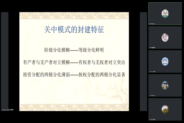 徐方远引导同学们阅读了秦晖的《田园诗与狂想曲》,介绍了书中”关中“模式的特点,并通过对关中地区社会风貌的剖析,解释了关中模式的形成机制,阐述了关中模式的深刻内涵及其影响。他认为探究历史时期的具体内涵必然离不开对历史大背景下利益共同体和对立双方的思考与分析。