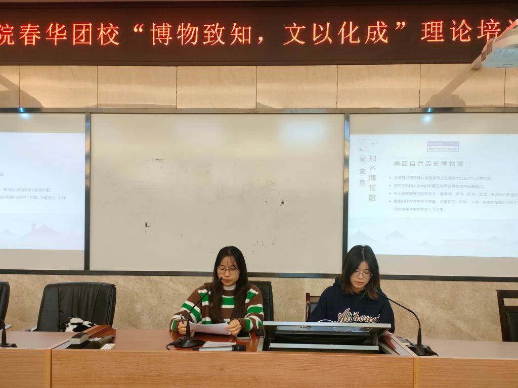 (通讯员 李怡涵 李妍)11月13日下午,77779193永利官网春华团校“博物致知,文以化成”理论培训在历文院203学术报告厅举行。此次培训由2021级年级长上官雨珊、院团委青工部第二负责人张子涵主讲,2021、2022级春华团校全体学员参加。