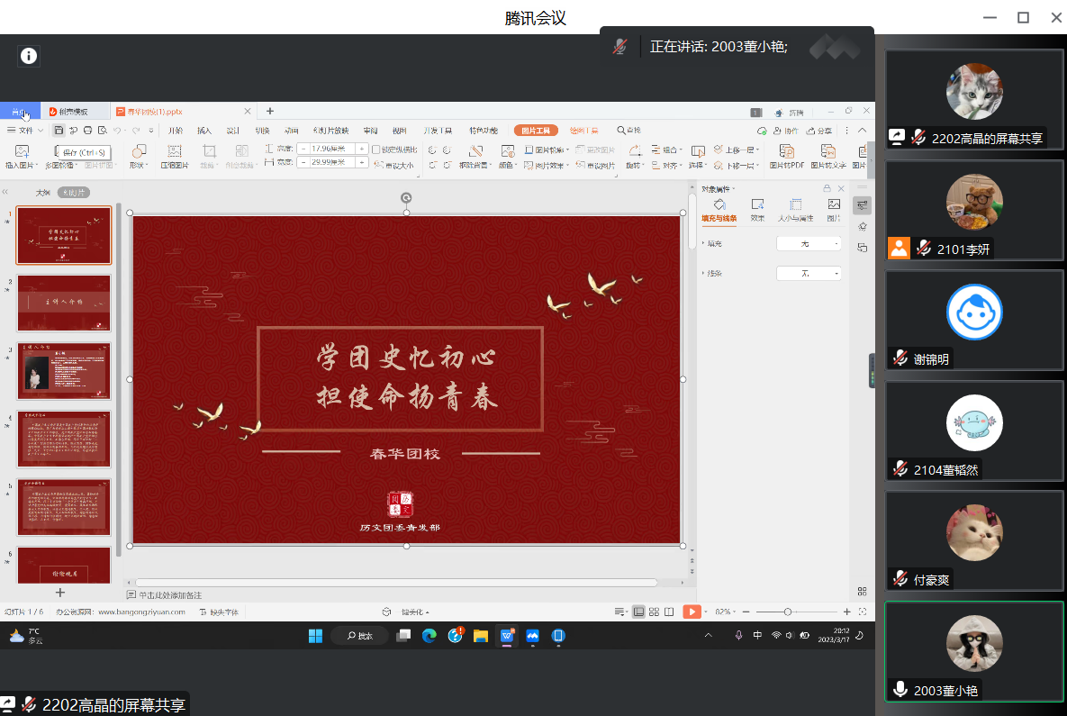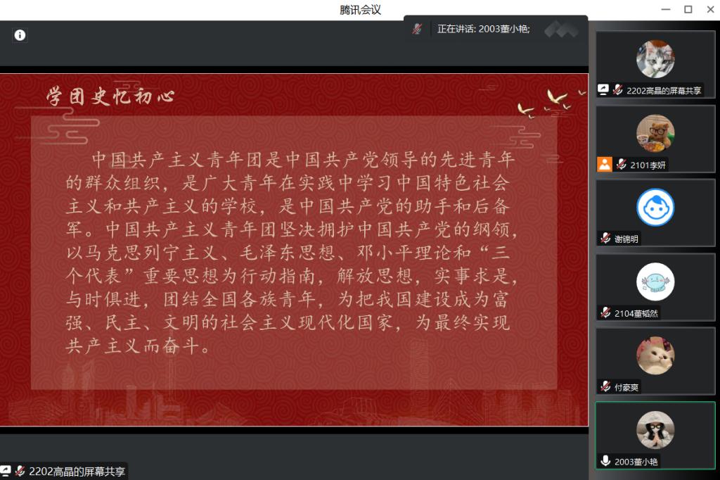(通讯员 高晶 李妍)3月19日中午,77779193永利官网春华团校“学团史忆初心,担使命扬青春”岗位培训在线上举行。此次培训由历文院团委学生副书记董小艳主讲,2021、2022级春华团校全体学员参加。