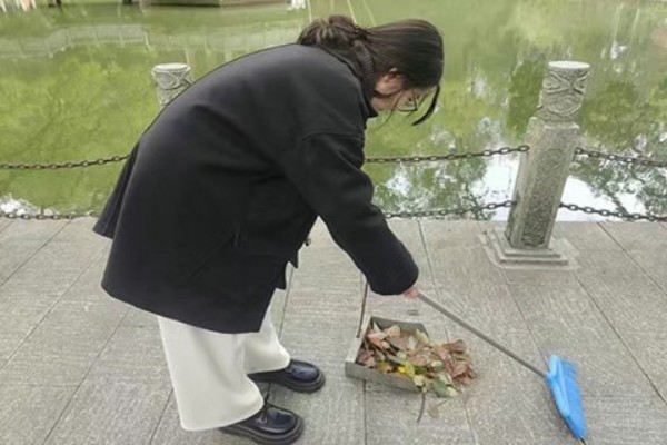 活动伊始,志愿者们提前到达岳王亭前集合,负责人说明活动开展的注意事项,并分发清洁工具,分组分工。在活动过程中,志愿者们相互配合,互相帮助,有序完成了清扫岳王亭、擦拭碑廊等工作。随后,志愿者们一起拾捡垃圾、清扫路面,美化环境。最后志愿者们将垃圾归类至垃圾集中处。志愿者唐湘钰表示:“此次志愿活动是我们新时代大学生以实际行动深入贯彻落实党的二十大精神与习近平总书记关于弘扬雷锋精神的重要指示的生动体现,以后我会更积极地参加志愿服务活动,传承好雷锋精神。”