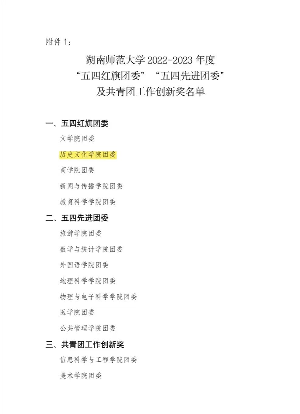 (通讯员 王怡祺 董小艳)近日,学校开展“表彰2022-2023年度湖南师范大学五四团内先进集体和优秀个人”活动,历文院团委在学院党委的正确领导和全院师生的共同努力下,在思想引领、社会实践、志愿服务、创新创业等方面取得了显著成绩,以总分全校第二的成绩荣获2022—2023年度校“五四红旗团委”称号。