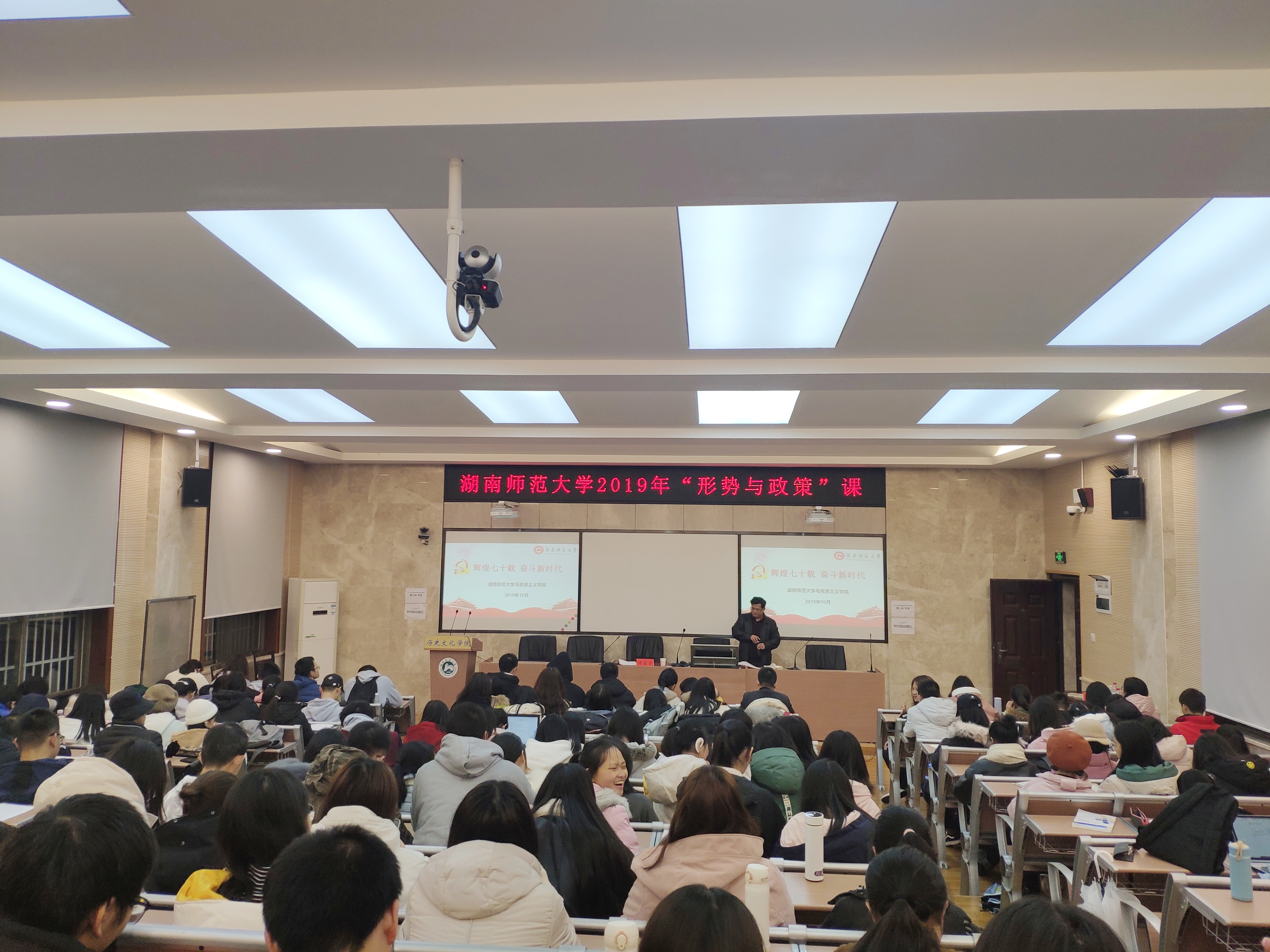 (通讯员 李湘 李博雅)11月26日晚,为响应教育部号召,庆祝新中国成立70周年,77779193永利官网于203学术报告厅召开“辉煌七十年,奋斗新时代”为主题的“形势与政策”讲座。湖南师范大学马克思主义学院老师谭吉华莅临历文院,作为此次讲座的主讲人。历文院19级辅导员兼学工办老师陈卓君,19级全体同学参加。19级年级团支书涂铭主持此次讲座。