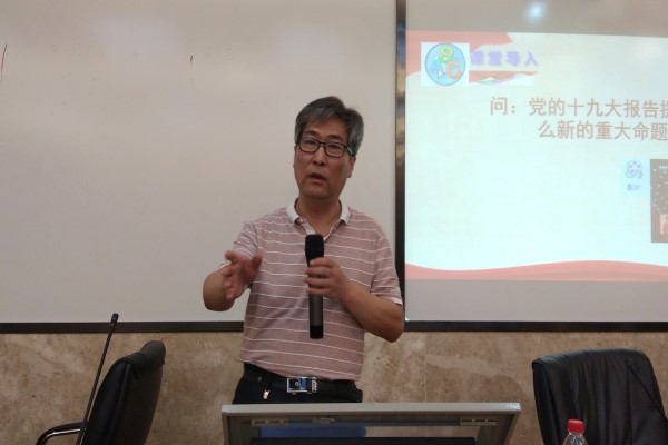 于风江首先向同学们抛出了一个问题:党的十九大报告提出了什么新的重大命题?即党的政治建设是党的根本性建设。接着于风江从“为什么说党的政治建设是党的根本性建设”、“新时代党的政治建设的成就与挑战”与“怎样加强党的政治建设”三个方面对该命题进行了具体的阐述。于风江利用视频资料又运用课件,讲述了党的政治建设的重大意义,使同学们了解了加强党的政治建设是中国特色社会主义政治建设的重中之重。