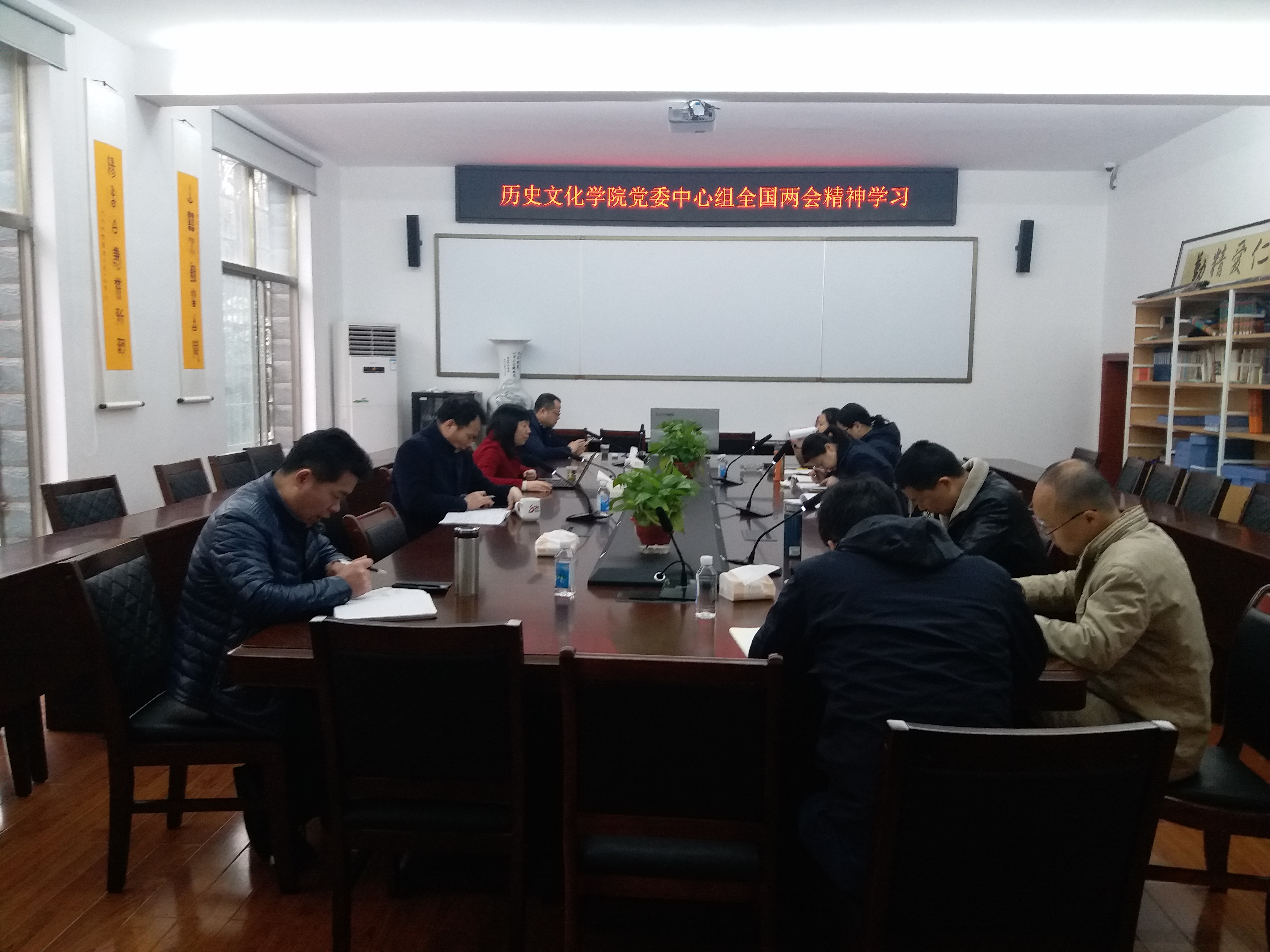 与会人员学习了2019年政府工作报告、《中国共产党重大事项请示报告条例》释读等资料,并交流了学习体会。孔春辉分享了学习习近平总书记在政协会议文化艺术界、社会科学界委员联组会上的重要讲话和参加内蒙古代表团审议时强调的“艰苦奋斗、勤俭节约的思想永远不能丢”的心得体会,分析了《中国共产党重大事项请示报告条例》的重要意义,要切实遵循和全面贯彻,强化责任和担当。学工办主任陈敏、教职工中古史教学法党支部书记杨超也结合本职工作谈及了个人观点。与会人员就如何发展学院的互联网+教育展开了讨论。