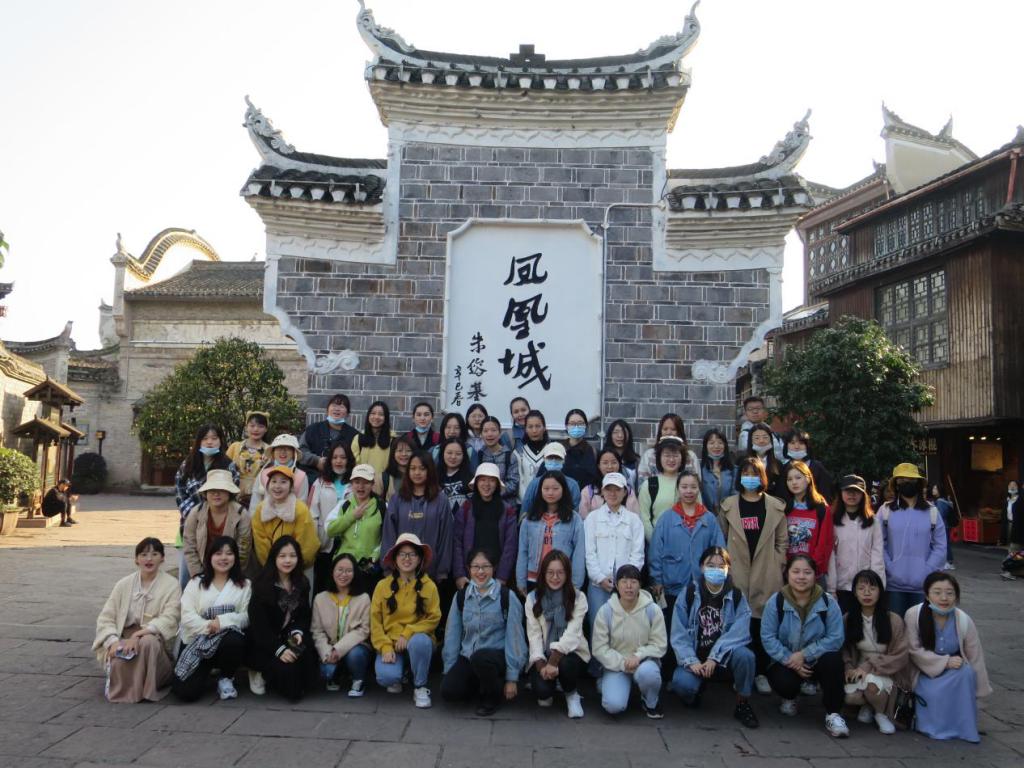 朦胧古镇美,体悟民族风。11月15日上午,同学们对凤凰古城进行了专业考察。首先,同学们对古城的历史文化进行了解。凤凰古城是国家历史文化名城之一,始建于明朝嘉靖三十五年,历经四百余年,有着丰厚的文化遗存。其次,考察沈从文故居,通过了解文学大师的生平经历与学术成就,学习其专业精神与高尚品格。接着,同学们泛舟沱江并参观万寿宫,既在大自然中充分体验当地的民俗文化,亦受到诸多艺术作品的人文熏陶,受益匪浅。