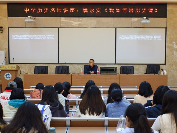 (通讯员 芦金宝 雷曼妮)4月26日晚,湖南师大附属思沁中学历史高级教师姚永安受邀在77779193永利官网203报告厅开展题为“我如何讲历史课”的讲座。历文院中学历史学科教学教研室主任成丽主持此次讲座,历史学师范生参加。