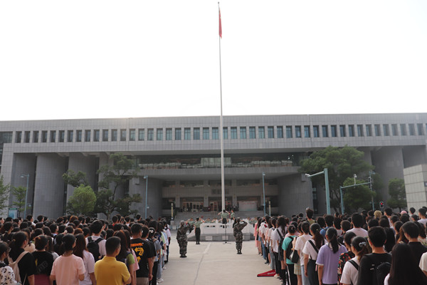 清晨7点,学校女子国旗护卫队迈着铿锵有力的步伐护送国旗来到升旗台。伴随着嘹亮的国歌声,五星红旗冉冉升起。之后,来自2020级历史基地班的刘官厅在鲜红的国旗下进行演讲,倾诉爱党心声。