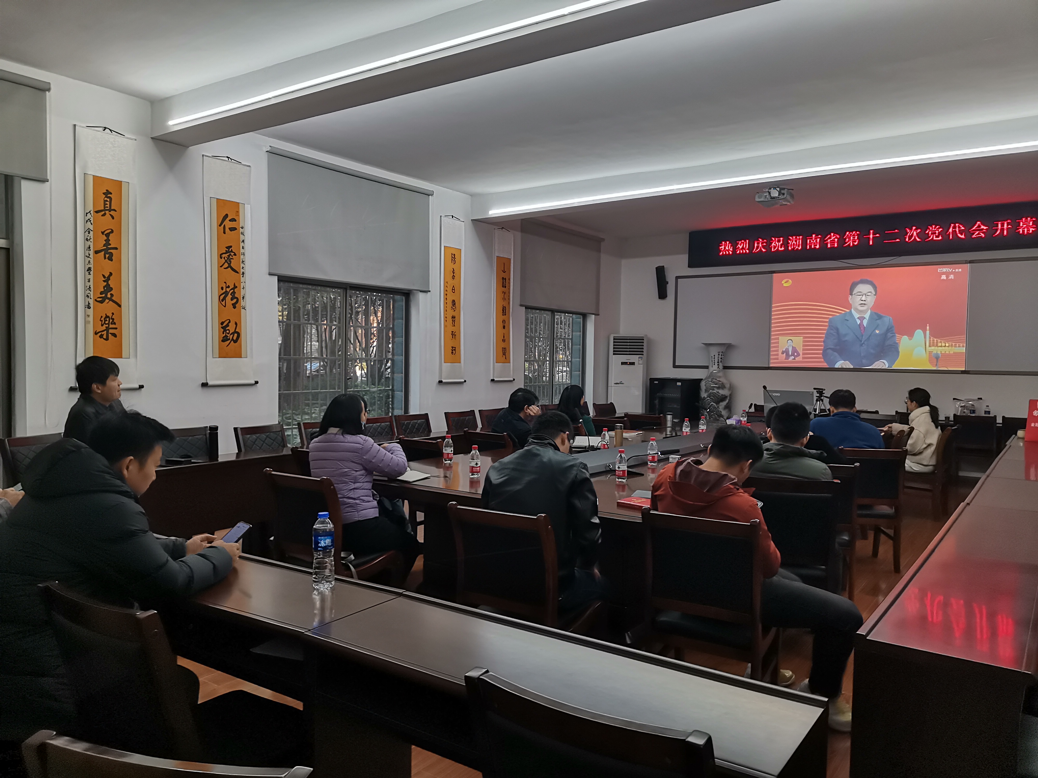 11月25日上午,中国共产党湖南省第十二次代表大会在长沙隆重召开。学院领导班子成员、各科室主任、各党支部支委成员在111会议室集中收看了大会直播盛况。