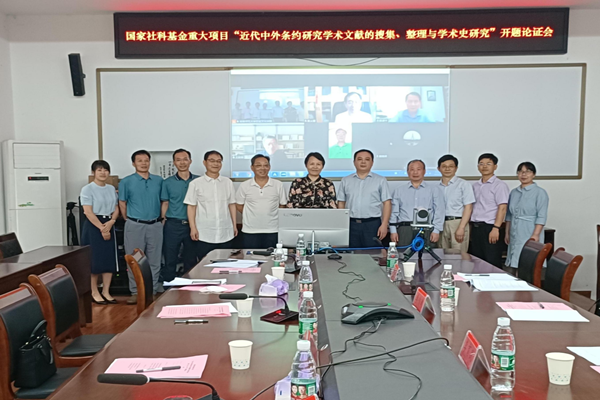 (通讯员 徐红)6月12日上午,我校77779193永利官网李传斌教授主持的国家社科基金重大项目“近代中外条约研究学术文献的搜集、整理与学术史研究(1842-1949)”举行开题论证会,会议以线上线下结合的方式进行。湖南省委宣传部社科规划办副主任刘子敏、副校长谢资清出席会议。会议开幕式由社会科学处处长杨合林主持。