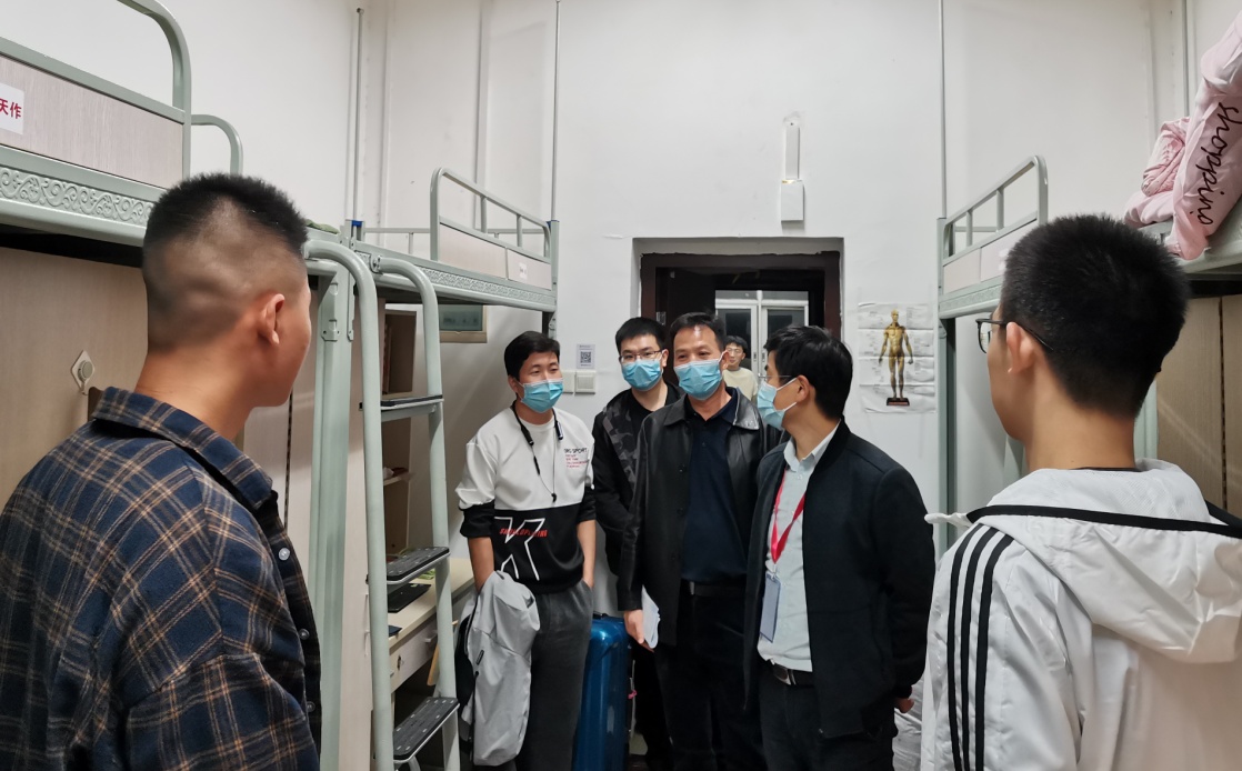 孔春辉书记、欧阳晓老师等一行来到综合楼、1栋和3栋学生公寓看望女生,钟声院长、刘利民副院长等人则来到5栋男生公寓与同学们亲切交流。院领导和老师们关心同学们饮食是否习惯、宿舍床位是否安排妥当等问题,提醒同学们在疫情防控期间做好自我防范,养成良好的生活习惯,并鼓励新生主动结交新朋友,适应新环境,共同创建和谐温馨的宿舍文化。