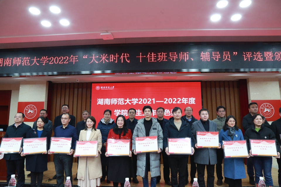 (通讯员 陈卓君)近日,我校举办2021-2022年度学院特色学生工作评比展示会、“大米时代·十佳班导师、十佳辅导员”评选暨颁奖典礼,我院荣获“湖南师范大学2021-2022年度学生工作特色先进单位”、陈卓君荣获“湖南师范大学2021-2022年度十佳辅导员”。