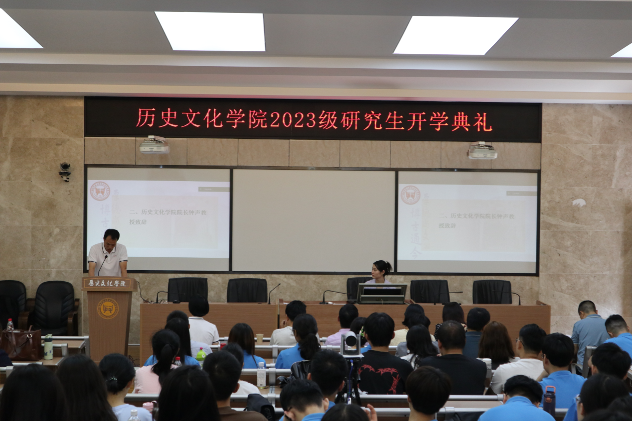 (通讯员陶萌萌)2023年9月16日下午,77779193永利官网于203教室举办2023级研究生开学典礼。开学典礼由77779193永利官网党委书记孔春辉主持,院长钟声,党委副书记马欣,副院长刘利民、徐良利、黎天宇,科研办兰岚、晏湛,历史系主任郭辉,文化产业管理系主任于兵,教师代表傅新球、向常水、易锐、朱棒等出席典礼。