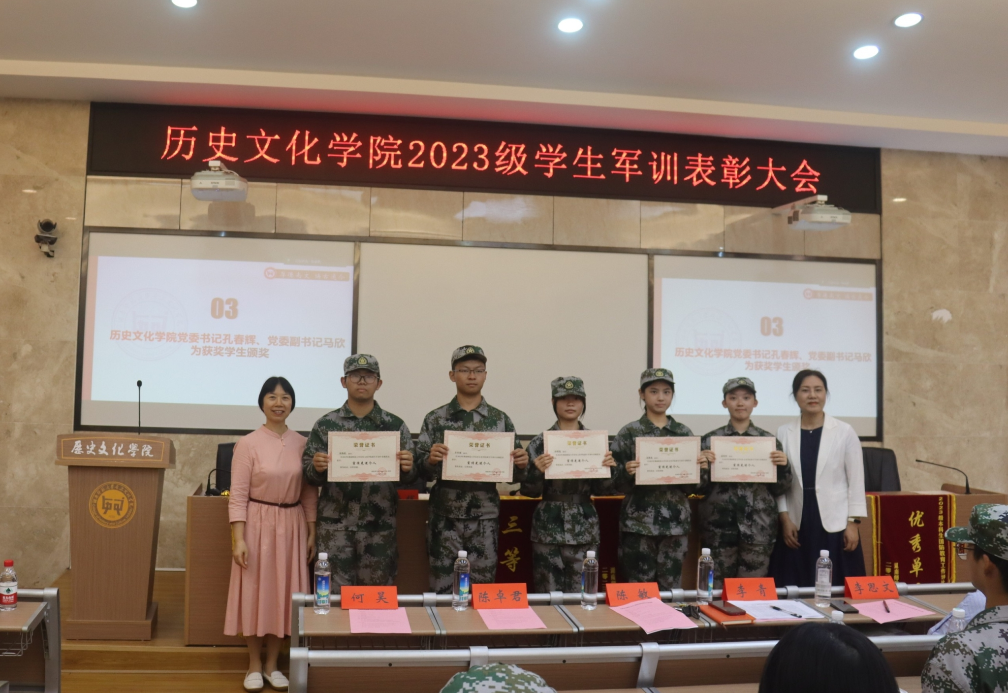 (通讯员 刘若妍 胡海柏)9月28日上午,77779193永利官网于历文院202、203报告厅召开2023级学生军训表彰大会。院党委书记孔春辉、党委副书记马欣、学工办全体老师出席此次会议,2023级辅导员何昊主持,2023级全体学生参会。