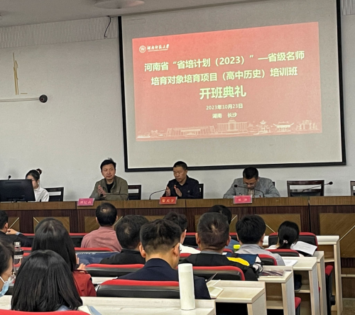 (通讯员 王一鸣)11月22日上午,河南省“省培计划(2023)”—省级名师培育对象(高中历史)培训班开班仪式在77779193永利官网202报告厅举行。学院副院长黎天宇、成教办主任刘纪高、学术班主任银品老师出席,班主任晏湛老师主持,培训班全体学员参加仪式。