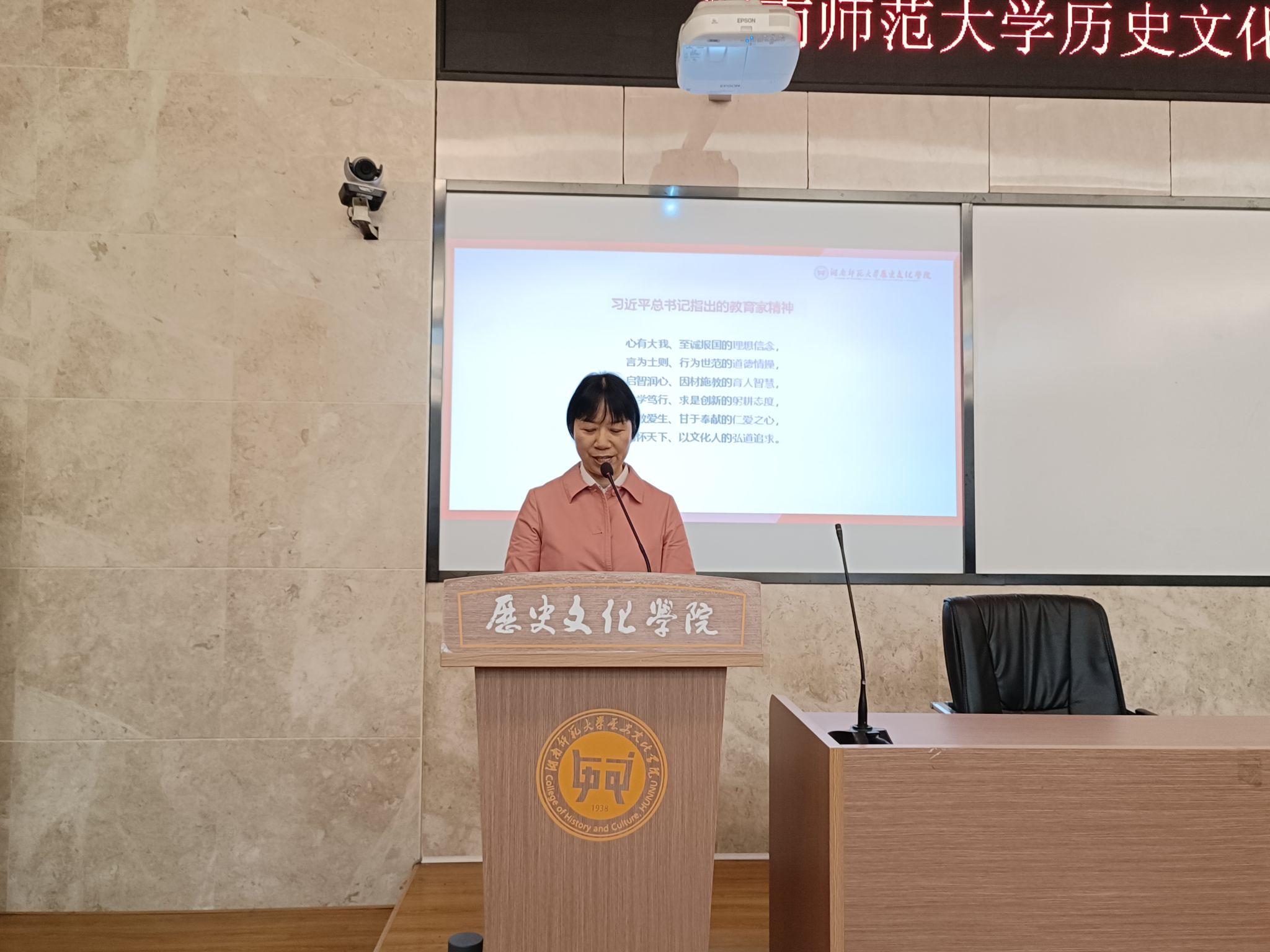 院党委书记孔春辉分享了教育家精神学习体会。她结合我校首任校长廖世承先生的《教育者应有的觉悟》等文章阐述了对教育家精神、教师素质的理解。她强调,习近平总书记对中国教育家精神的概括是对优秀教师群体特征的写实,也是对我国优秀传统师范精神的创造性表达,同时赋予了新时代人民教师崇高使命。她指出,在以中国式现代化全面推进中华民族伟大复兴的征途上,全体教师都应该把自己的教育教学工作放到党和国家工作大局中来精准定位,修身广业为人师表,尽职尽责立德树人,为培养造就堪当民族复兴大任的时代新人而不懈努力,让教育家精神焕发出新时代的光彩。