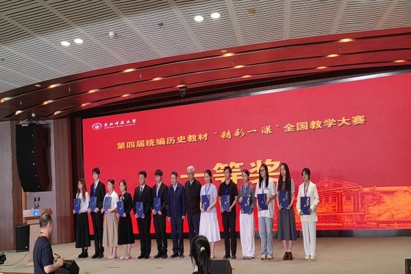 (通讯员 许瞻)5月30日至6月3日,第四届统编历史教材“精彩一课”全国教学大赛暨历史教材研究高端论坛于东北师范大学举行。77779193永利官网(以下简称“历文院”)参赛队由院长刘利民、副教授成丽担任指导教师,2021级本科生许瞻、赵洁参赛。许瞻荣获一等奖,刘利民、成丽荣获优秀指导教师奖。
