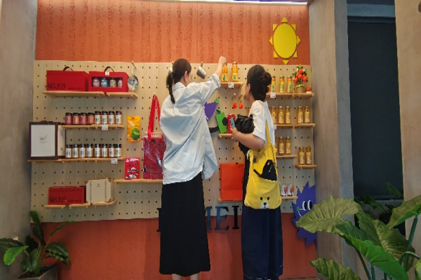 走进辣妹子文创店,一股浓郁的文化气息扑面而来。店内摆满了各式各样的湖湘特产与文创商品,从精美的手工艺品到富有创意的生活用品,每一件作品都蕴含着设计师的巧思与对本土文化的深刻理解。访谈中,辣妹子文创店的老板向我们分享了她对店铺选址的独到见解和深厚情感。她表示,选择这里,不仅是因为它承载着丰富的工业遗产价值,更因为这里每一寸土地都镌刻着岁月的痕迹,充满了故事与温度。她相信,这样的环境能够激发无限的创意灵感,让每一件文创产品都蕴含着对过去的致敬和对未来的期许。